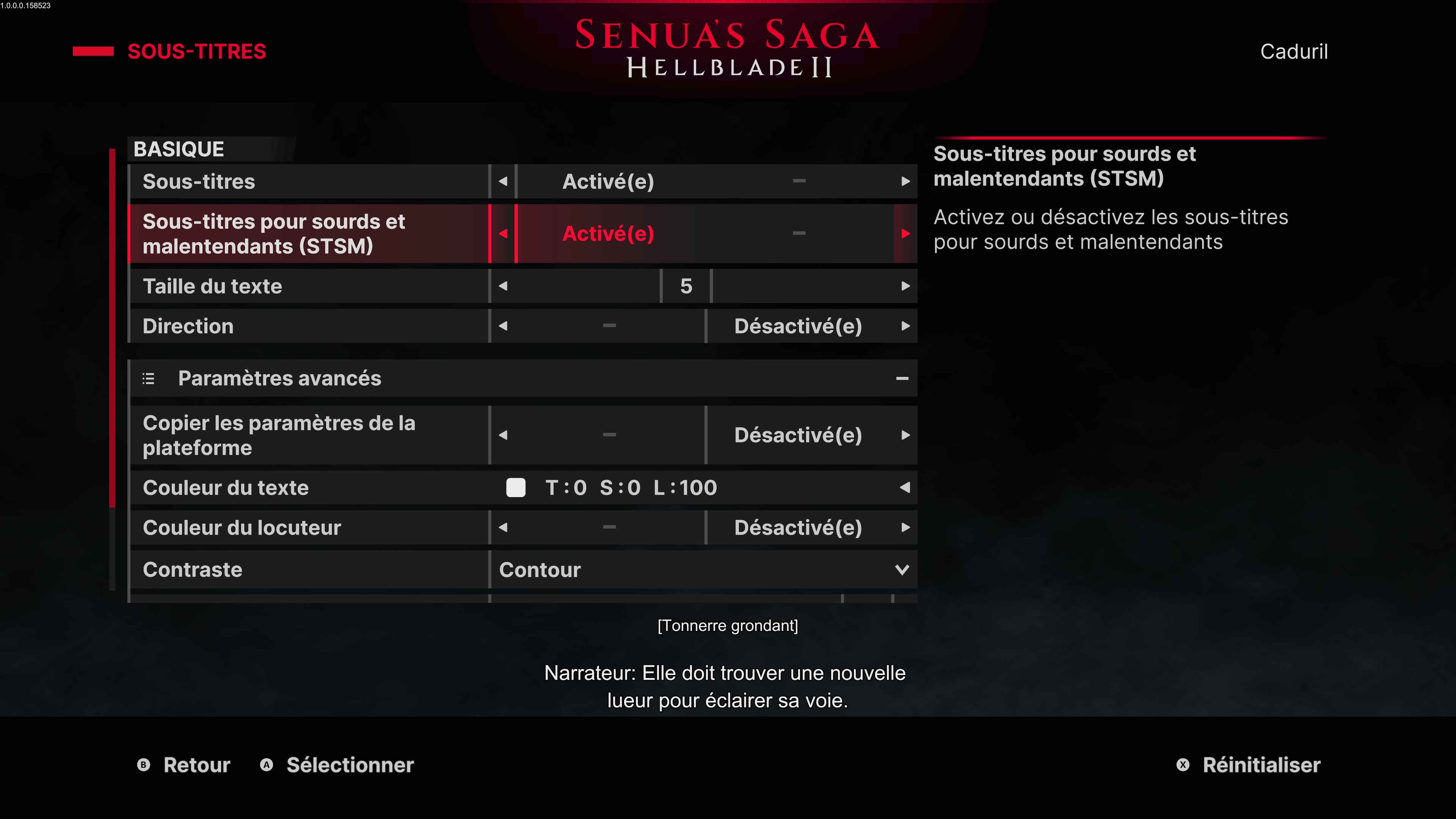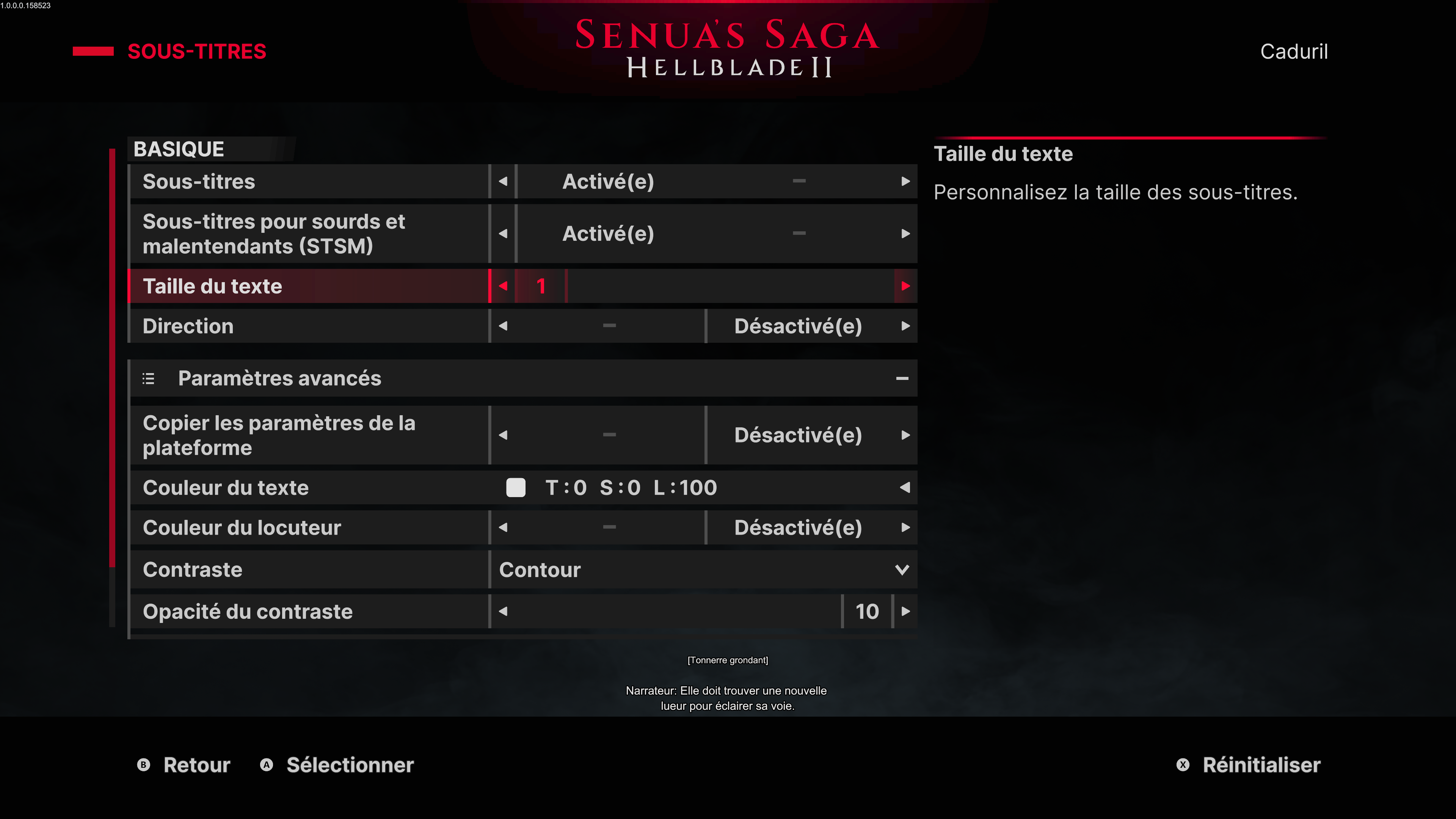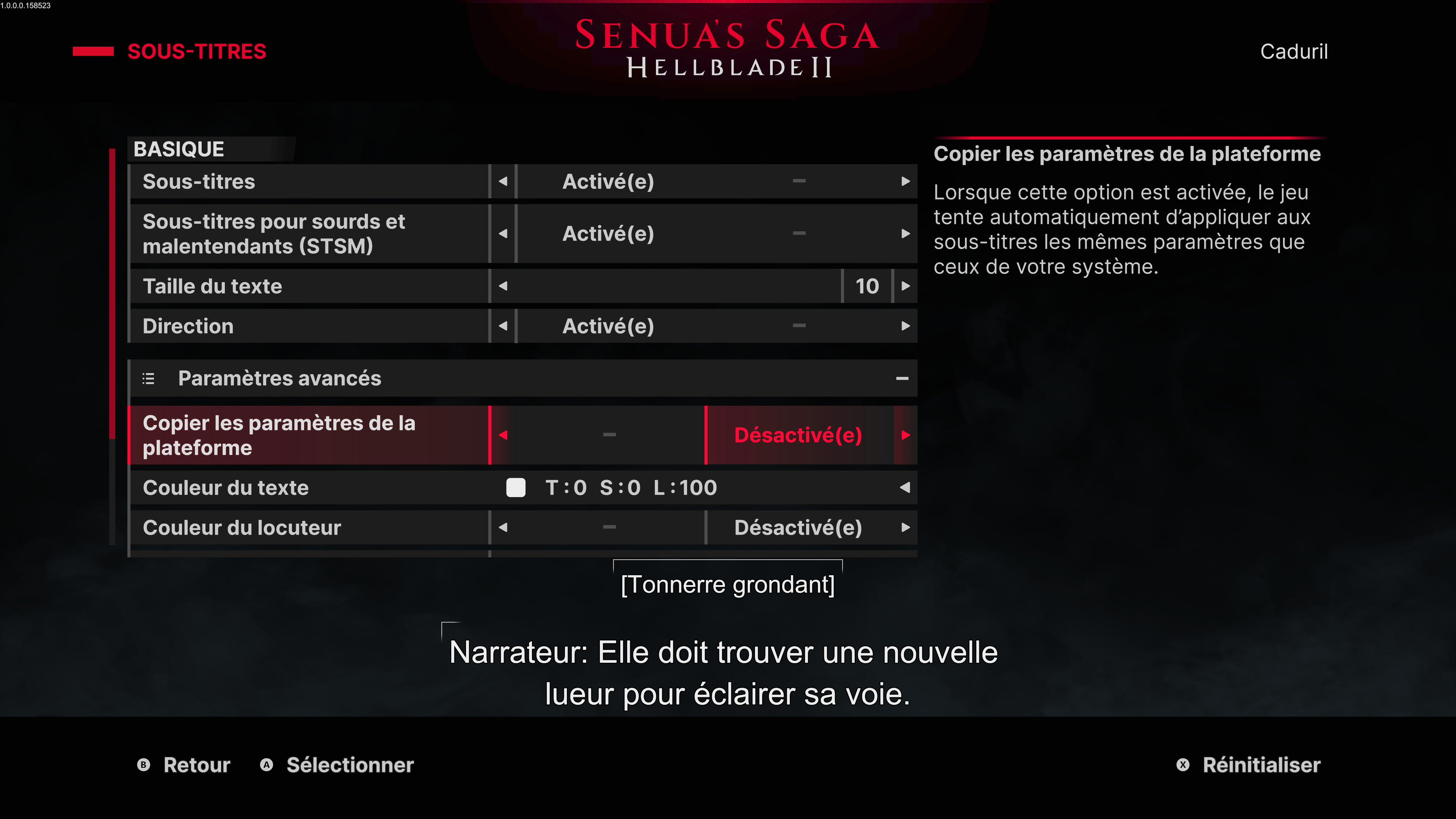 Next, you’ll need high-quality subtitles to follow the story and discussions with other characters. In HellBlade 2, you have a wide range of settings. You can adjust font size and color and add an opaque background. A rarely-seen option is that the game proposes copying console settings! In fact, you’ve most certainly set the console’s menus to suit your needs. Hellblade 2 will use the same settings with just one click.