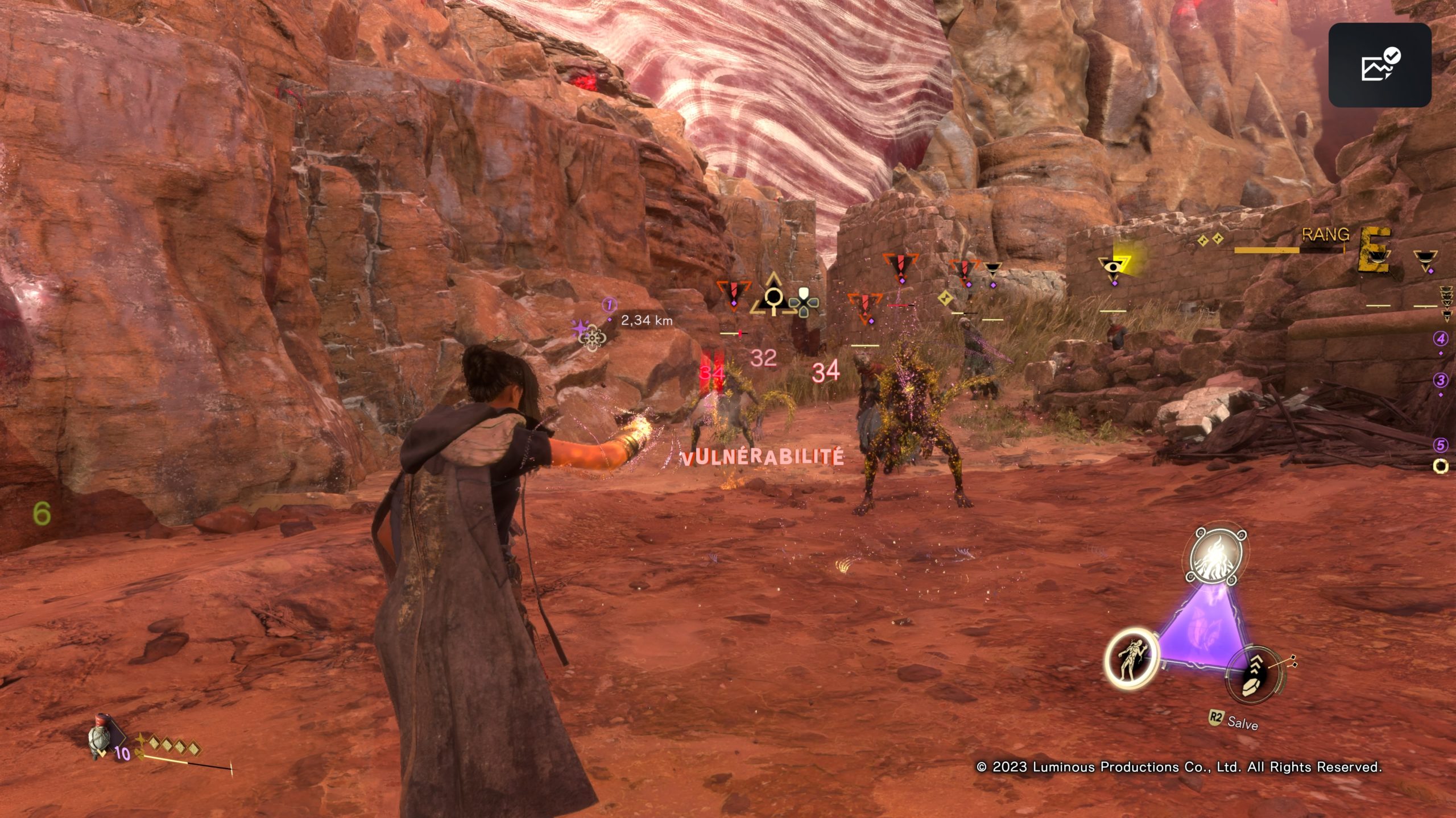 Forspoken a de très nombreuses informations visuelles. Et, on en parlait plus haut, ça peut être rapidement assez chargé d’ailleurs. Leur qualité – et les méthodes pour les obtenir autrement – est donc essentielle pour le joueur ou la joueuse déficiente visuelle.
