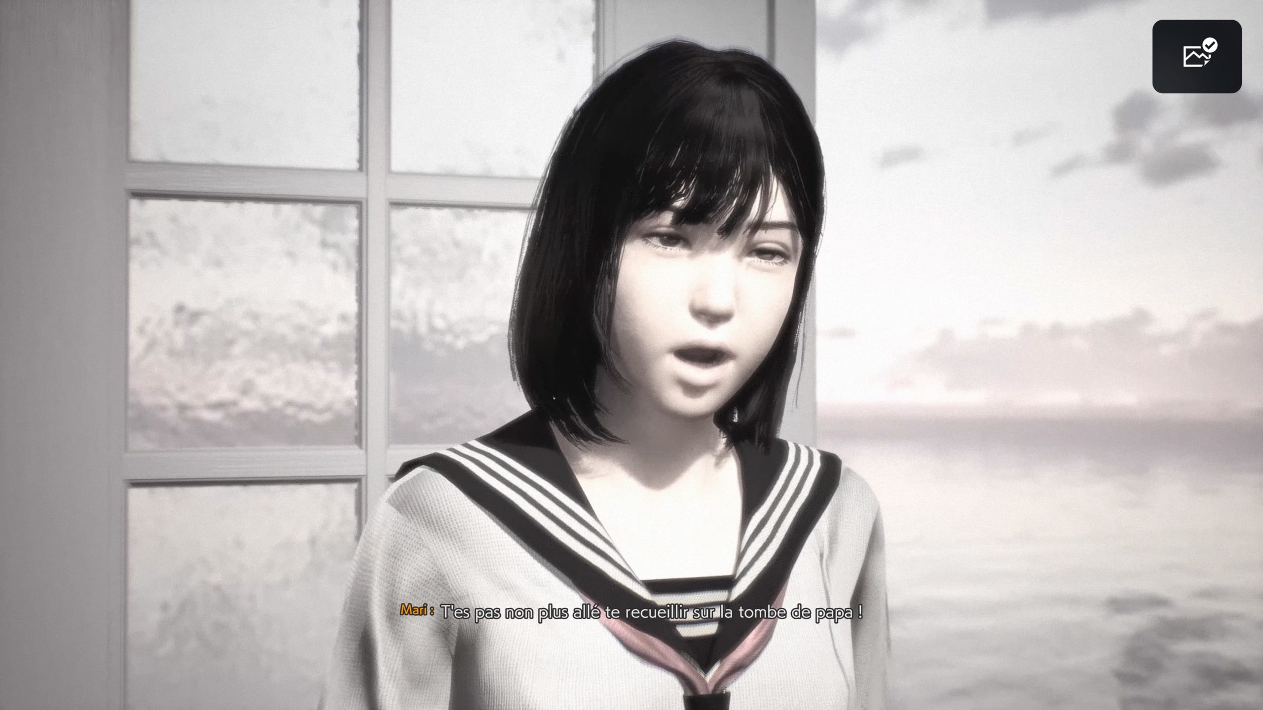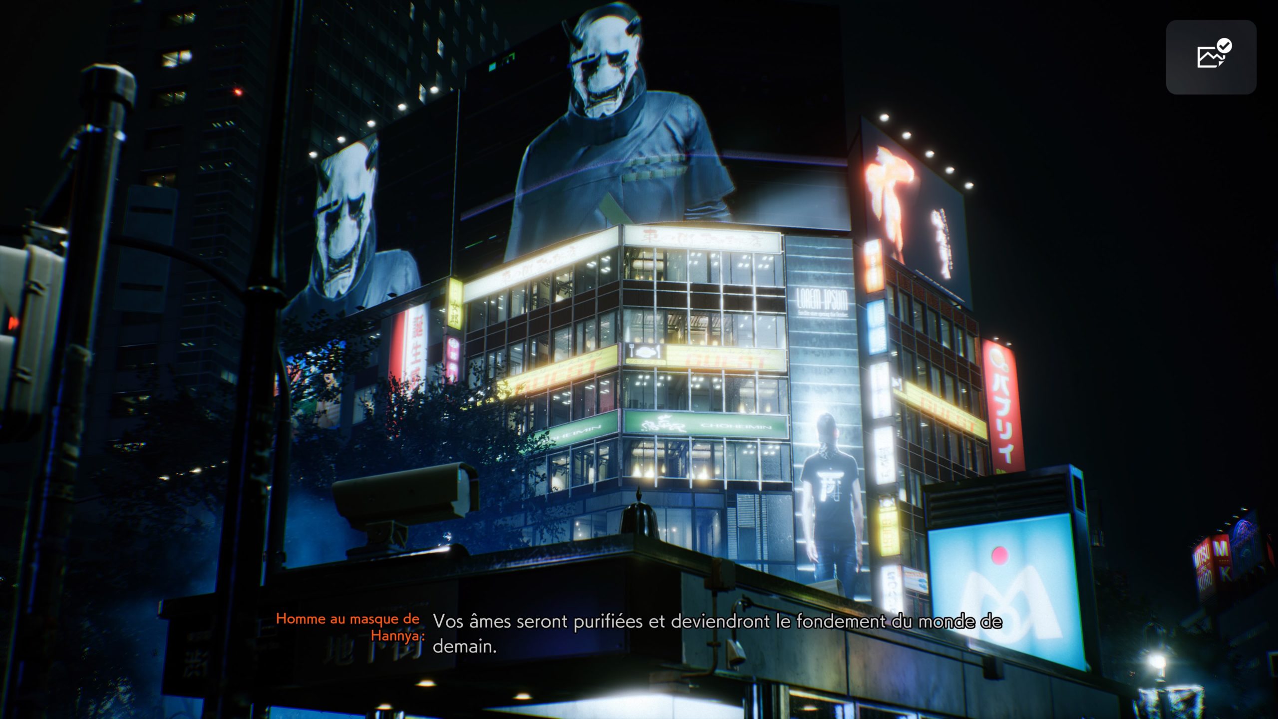 « Ghostwire : Tokyo » est un jeu d’aventure, l’histoire y est importante. Il faut donc pouvoir la suivre au travers des sous-titres. Or, si les tutoriels ont bien un fond opaque, ce n’est pas le cas des sous-titres. Ceux-ci peuvent donc être moins visibles par moment, même si l’ambiance est majoritairement sombre.