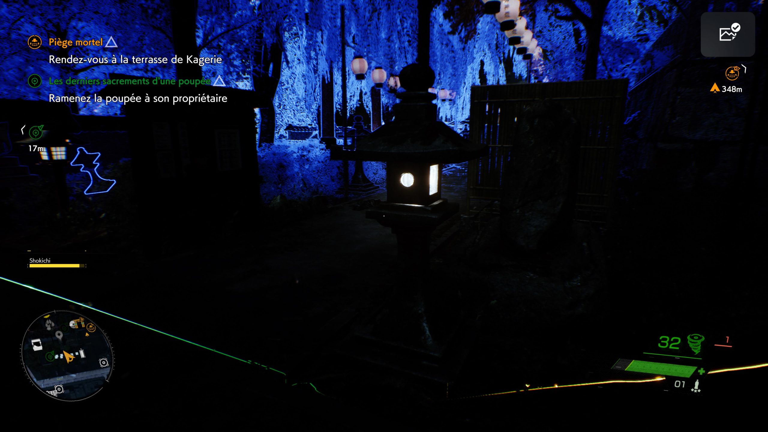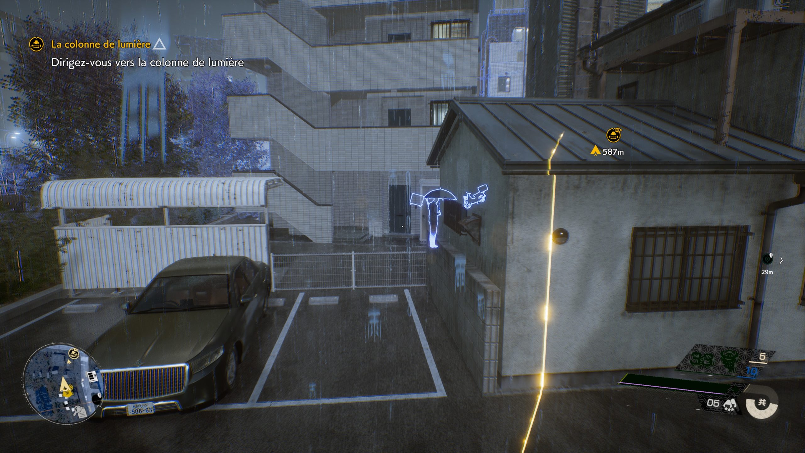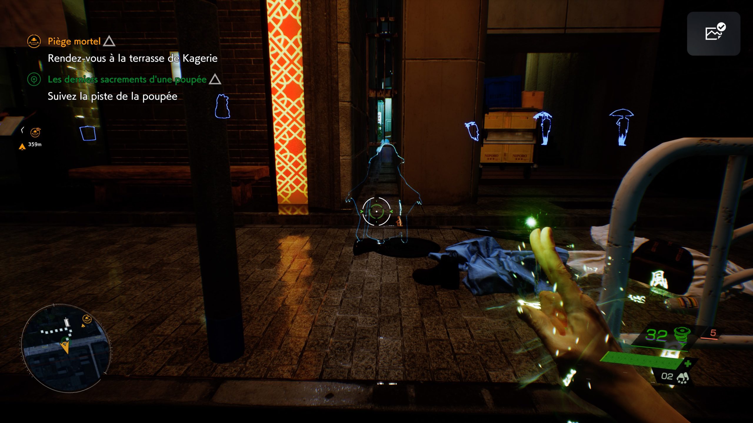 Autre point important, c’est de repérer les ennemis à temps ! Leur visuel éthéré en tant qu’esprits, blanc et bleu clair, peut aider à les repérer, mais cela dépend de l’environnement. Dans « Ghostwire : Tokyo » la PS5 utilise ses atouts. Les ennemis font du bruit, spatialisé et dans le micro de la manette. Ce n’est pas systématique, mais une vibration vient compléter cette alerte sonore lorsque l’ennemi est en alerte.