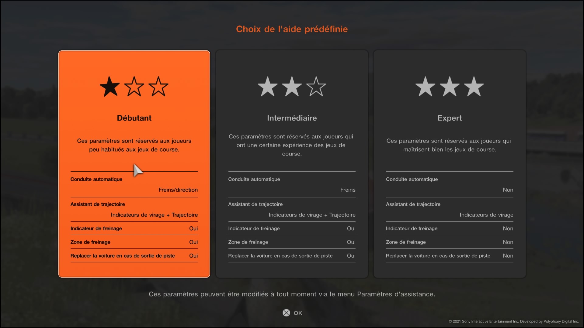 Notez que la différence entre débutant et intermédiaire est faible. En débutant, vous avez une aide à la direction, mais au test nos joueurs n’ont pas trop vu de différence, sûrement parce qu’ils prenaient déjà la main sur la direction spontanément. Par contre, le niveau expert change beaucoup, donc on vous conseille d’attendre d’être à l’aise avant de vous y mettre.