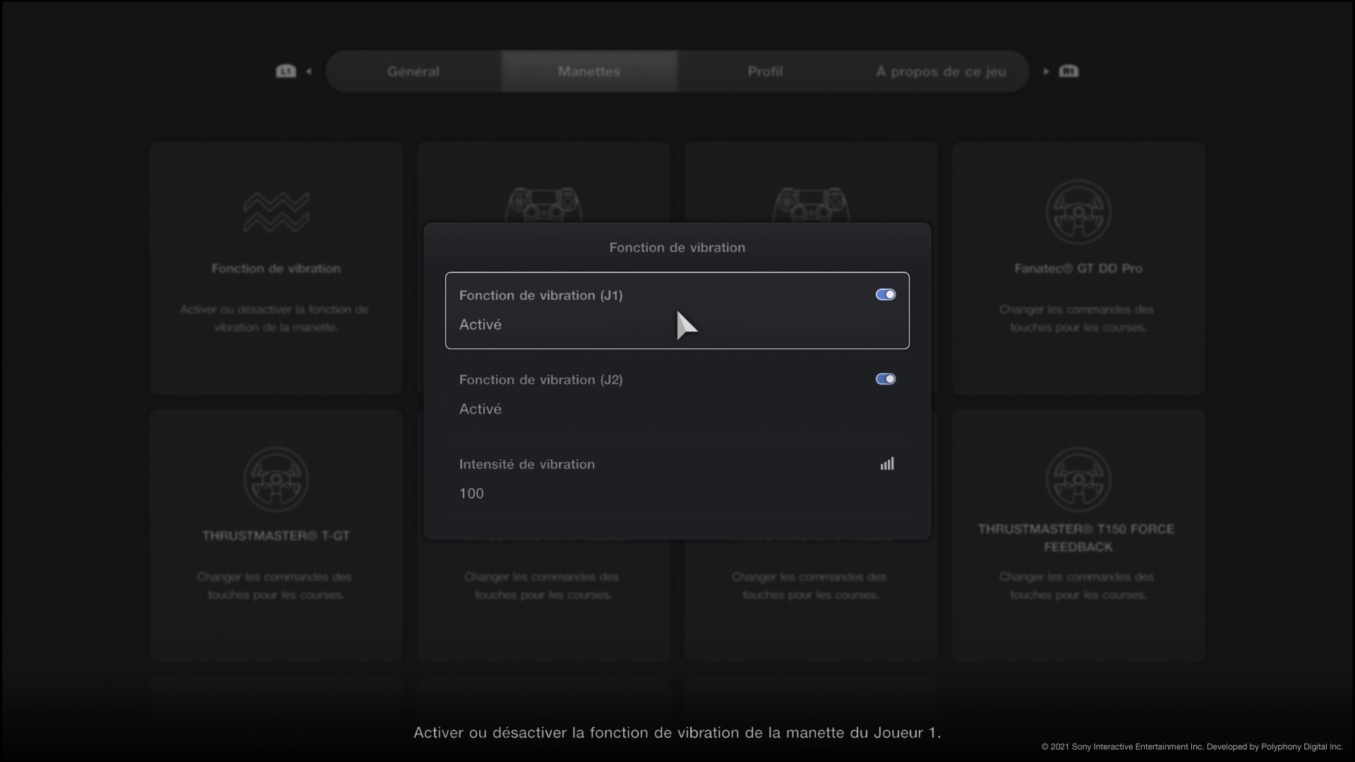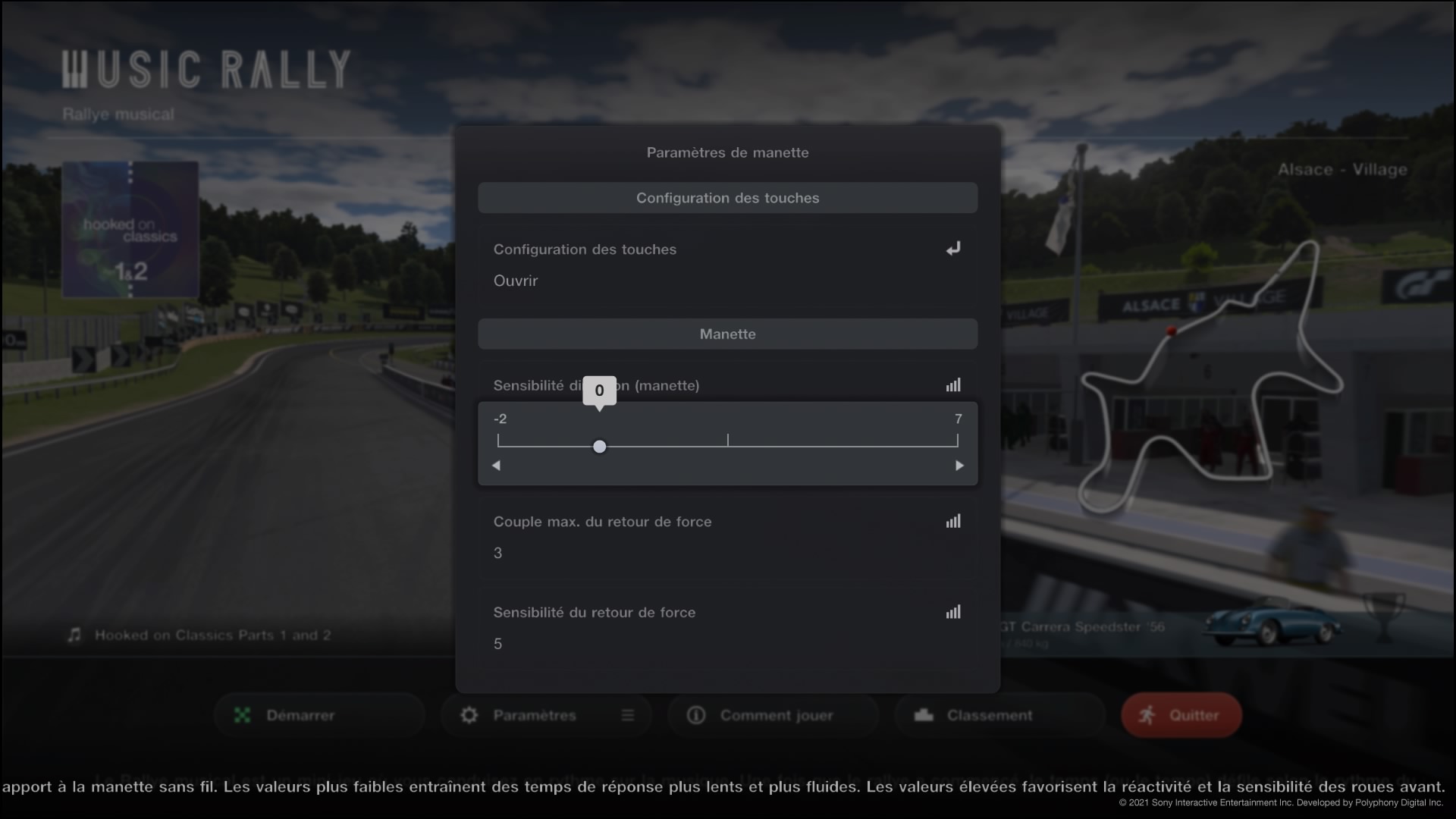 Vous pourrez également aller plus loin dans le réglage fin en fonction de vos besoins. En effet, il est possible de régler ou enlever les vibrations dans la manette. Elles servent notamment à vous prévenir quand vous mordez sur l’extérieur de la piste. Vous pouvez également régler la sensibilité des joysticks avec 10 niveaux, de -2 à 7.