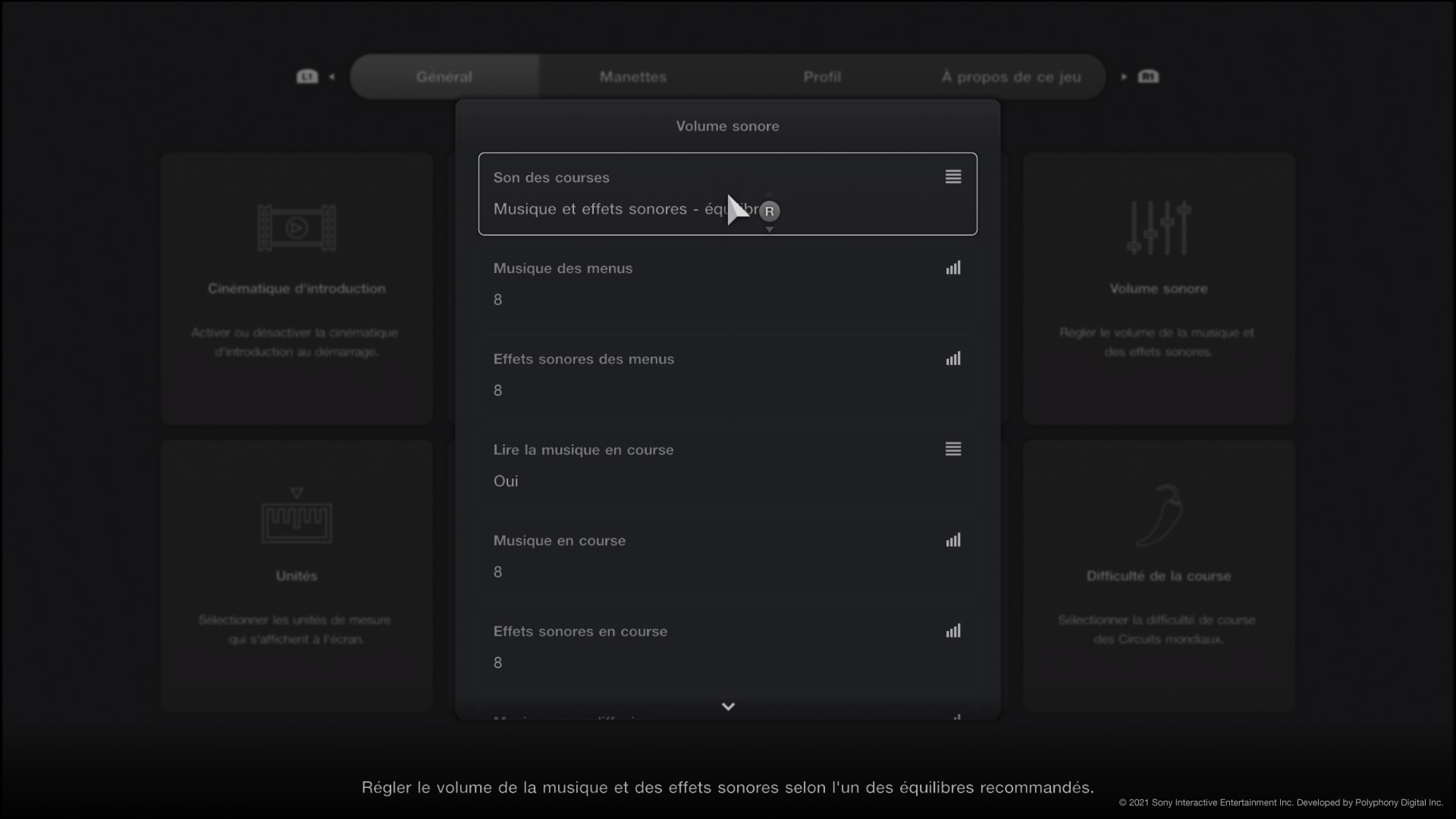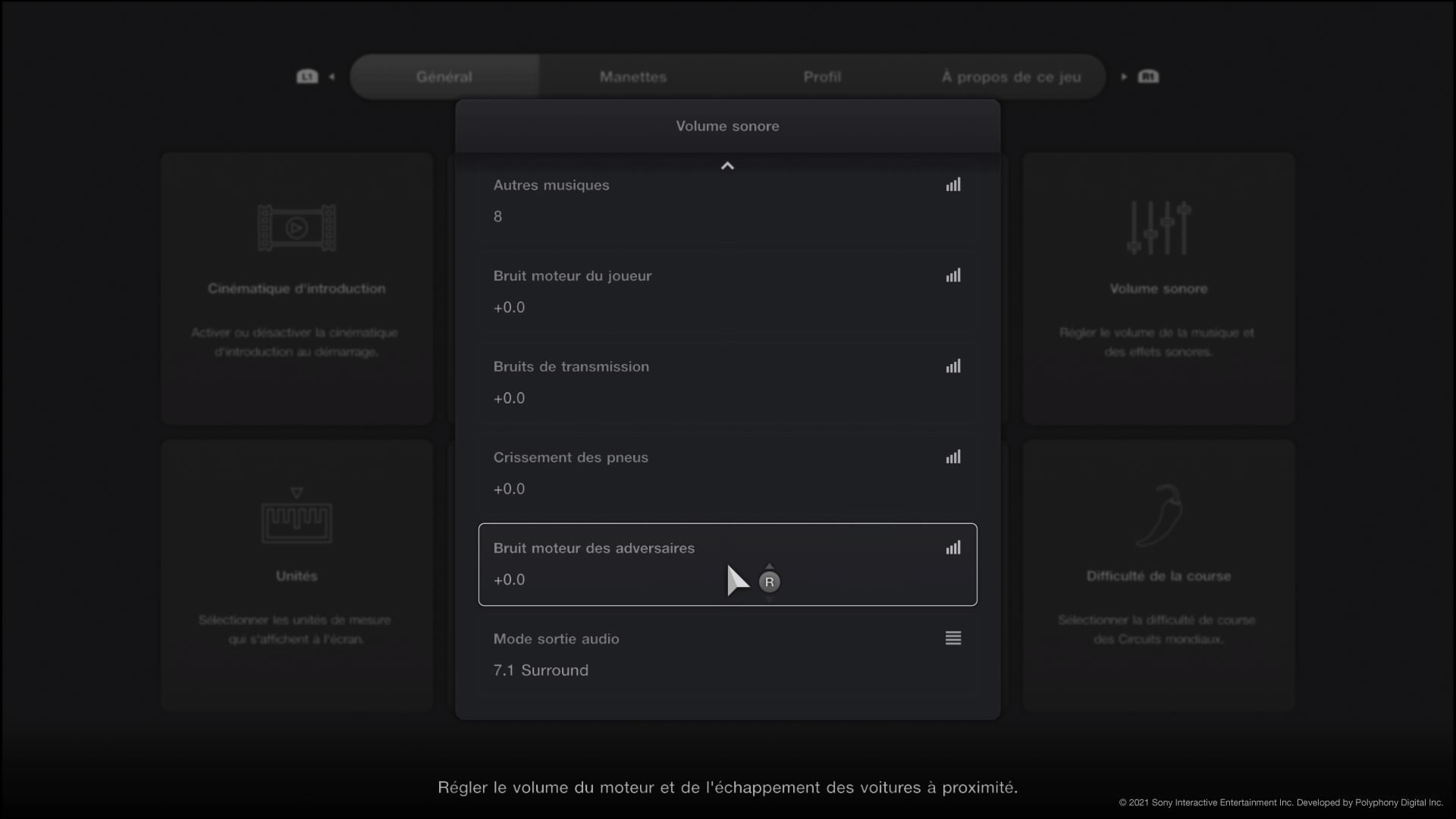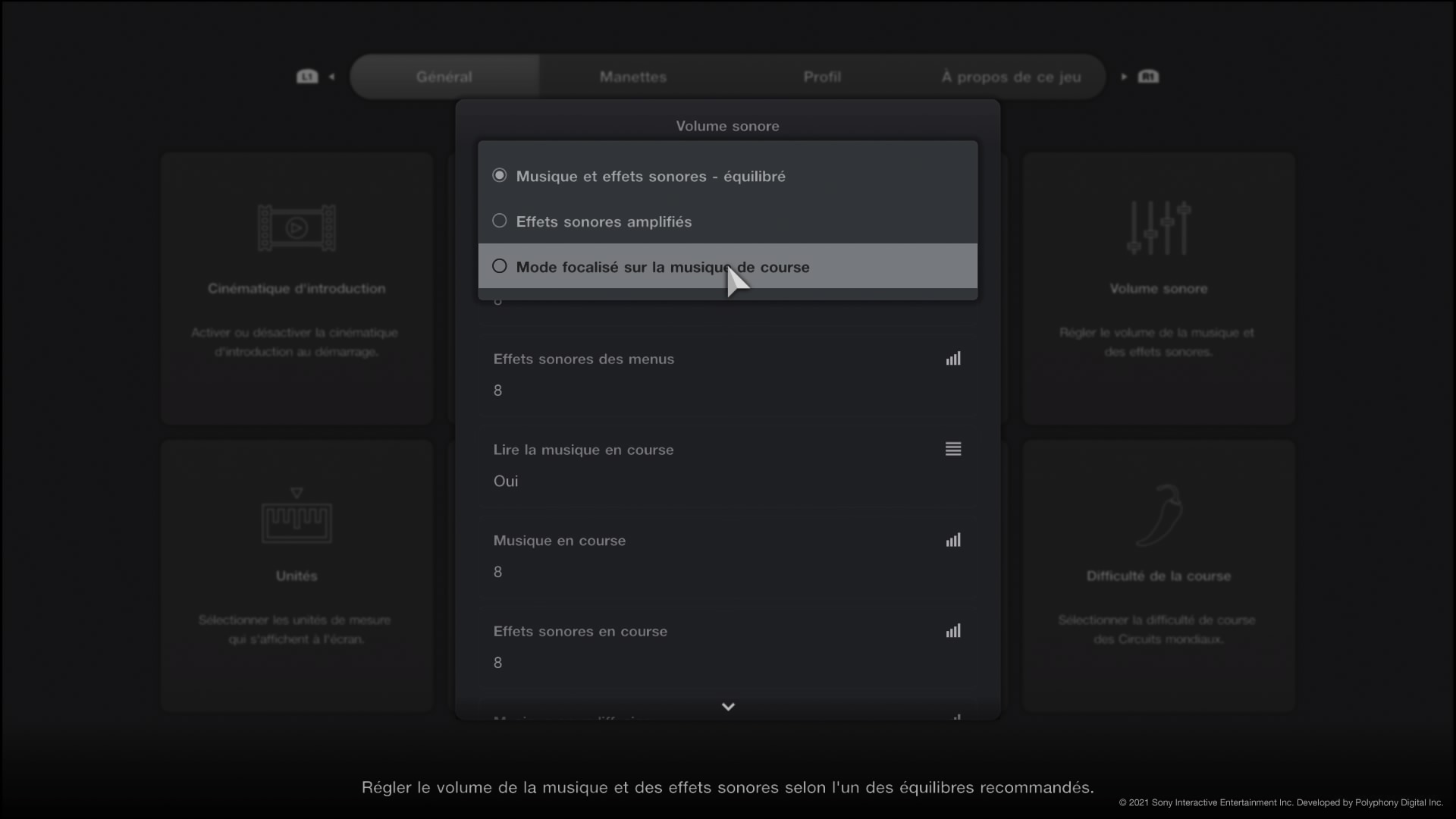 Les options vous permettent également de prioriser les effets sonores et de régler la puissance de ceux qui pourraient vous perturber, comme les rugissements de moteurs ou les crissements de pneus.