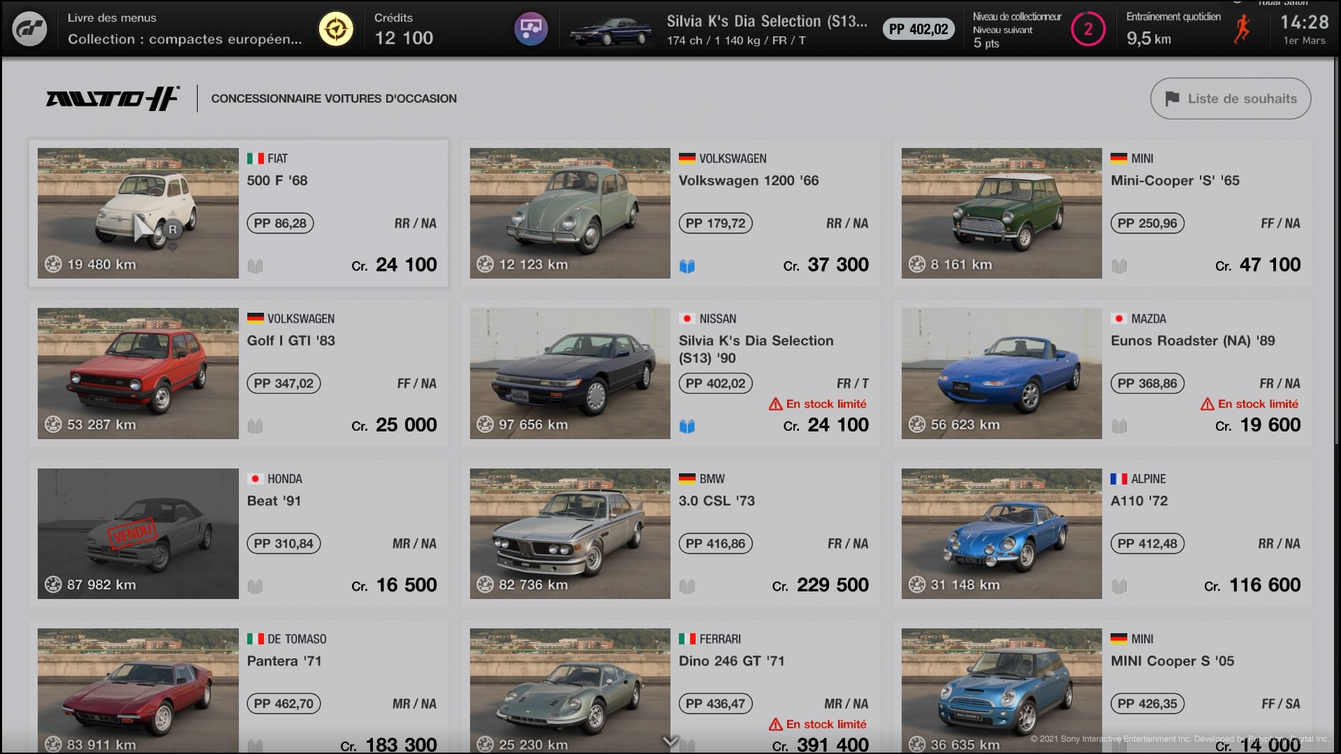 Le système de Gran Turismo vous invite à améliorer vos véhicules et son PP. Cette valeur globale vous donne la puissance et la maniabilité de votre véhicule. Pour faire simple, plus il est haut, plus votre voiture est forte et passera facilement. Chaque course a un PP recommandé. Vous pouvez acheter des voitures au PP plus haut. Il est bien identifié. En effet, il est entouré et isolé sur les fiches de véhicules. Mais vous pouvez aussi améliorer votre véhicule en achetant des pièces qui vont monter son PP.