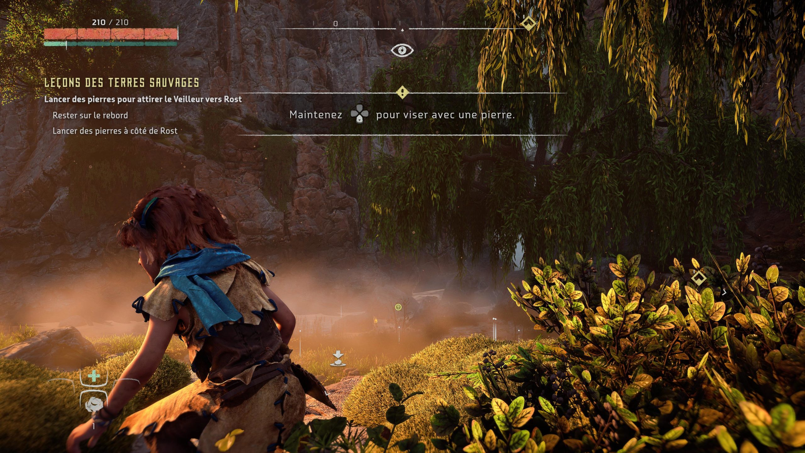 Comme mentionné précédemment, Aloy dispose de diverses armes pour affronter les machines. Parmi celles-ci, le Focus est un dispositif qui lui permet de détecter facilement les failles. Il permet également de repérer les points faibles de ses adversaires.