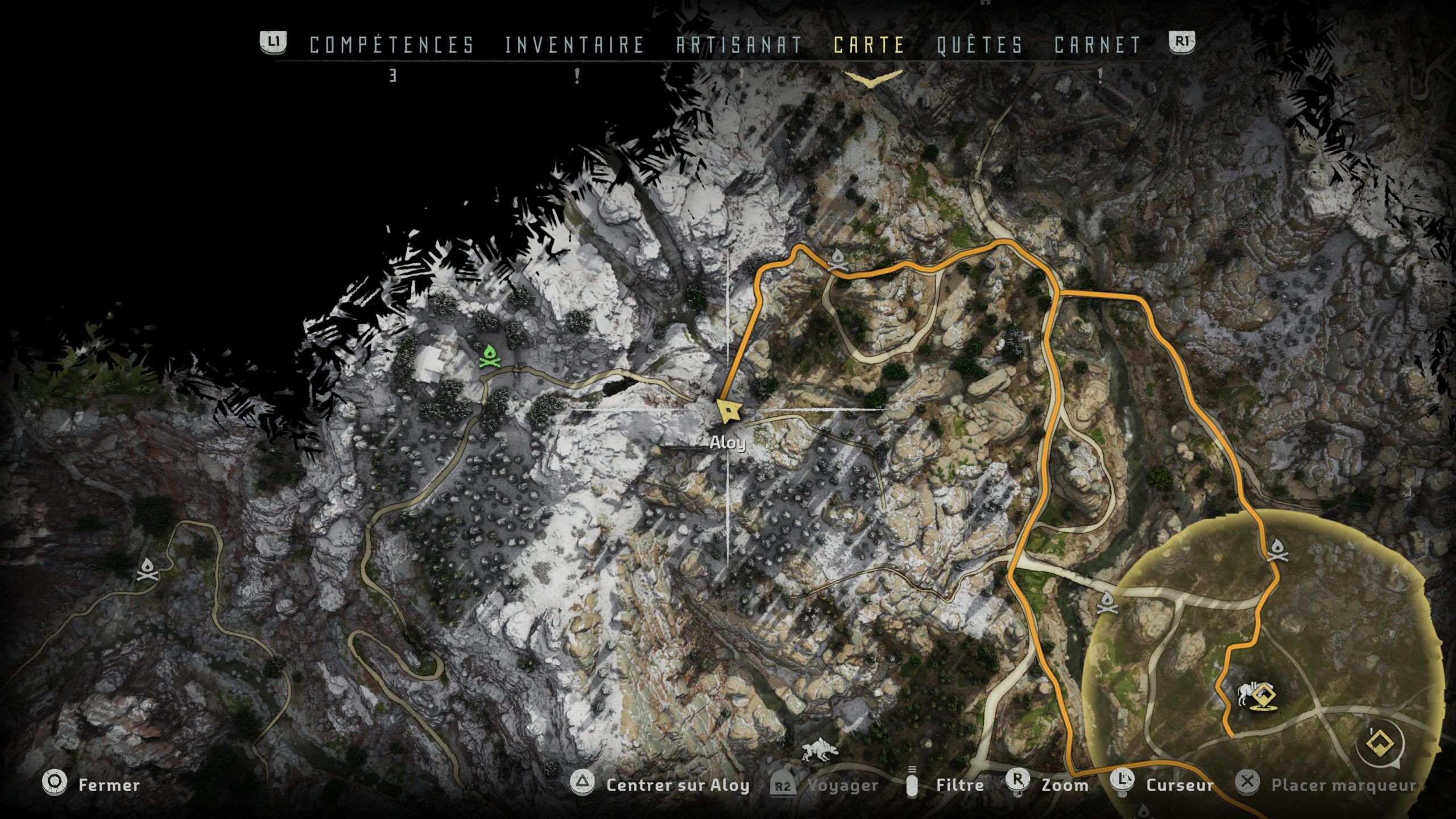 Pour minimiser l’utilisation de la carte, il est possible d’activer un marqueur d’objectif permanent en jeu. Néanmoins, certains problèmes subsistent dans les menus, qui seront abordés plus en détail dans la partie concernée.