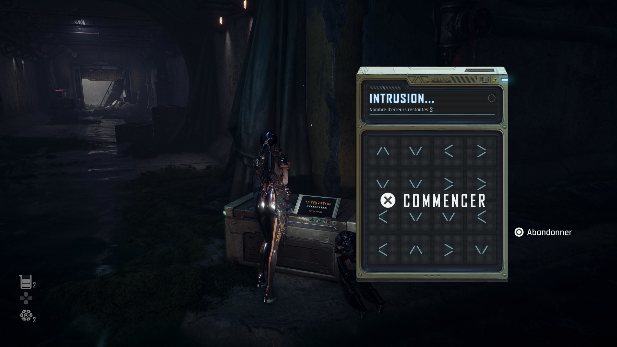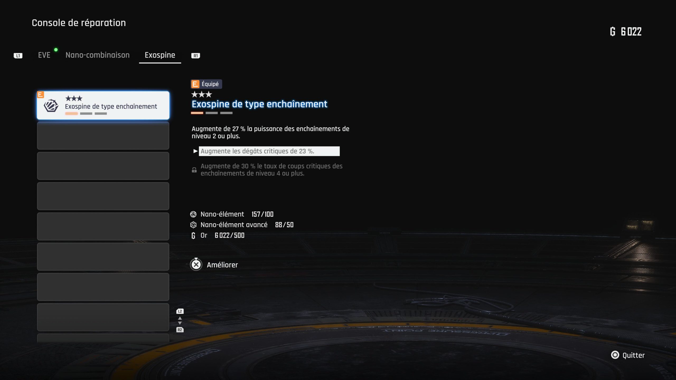 Le matériel, surtout l’équipement et l’exospine, permettent de personnaliser le gameplay pour renforcer les compétences. En jeu, les ateliers de fabrication vous permettront de modifier votre arme et le drone qui vous accompagne. Par exemple, celui-ci vous aidera à déverrouiller des coffres jusque là inaccessibles.
